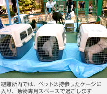 - 避難所での動物の世話は飼い主による自主管理が原則(餌やケージ等飼育に必要な用具も原則として飼い主が用意)